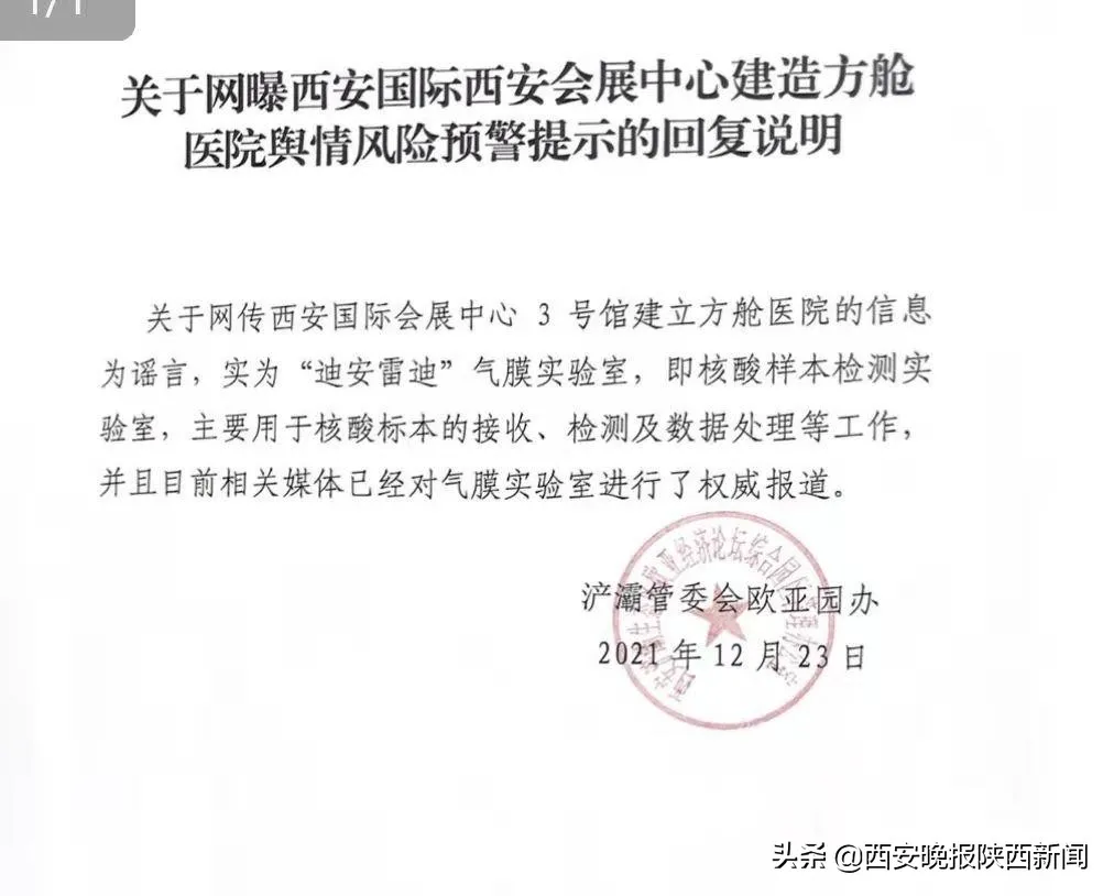 近日,短視頻平臺(tái)有網(wǎng)民發(fā)視頻稱“西安國際會(huì)展中心正在建方艙醫(yī)院”,經(jīng)核實(shí),該信息為謠言,實(shí)為“迪安雷迪”氣膜實(shí)驗(yàn)室,用于核酸檢測(cè)工作。