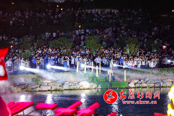 晚會在嘹亮激昂的獨唱《東方紅》中拉開序幕,緊接著,磅礴大氣的歌舞串燒《我和我的祖國》《萬疆》《愛我中華》,如詩如畫的水上表演《南湖紅船》《江南水鄉(xiāng)》《滾滾長江東逝水》,動力澎湃的RAP時尚秀《門戶新安康》,美輪美奐歌舞表演《我的深情為你守候》《為祖國干杯》《送你一個長安》《我愛你,中國》《領(lǐng)航》等節(jié)目相繼登臺表演,與此同時,絢麗多彩的燈光秀和仙氣飄飄的霧森特效穿插其中,不斷將演出推向高潮。最后,整場演出在大合唱《沒有共產(chǎn)黨就沒有新中國》的歌聲中圓滿落下帷幕。
