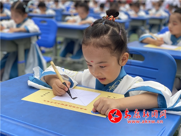 本網(wǎng)訊(通訊員 王宗濤)9月13日,孔子誕辰紀(jì)念日來臨之際,由安康市文化和旅游廣電局、安康市高新區(qū)教育體育局主辦,安康博物館、安康高新區(qū)第四小學(xué)承辦的以“喜迎二十大,啟蒙新未來”為主題的新生開筆禮儀式在高新四小操場(chǎng)隆重舉行,一年級(jí)340名新生體驗(yàn)傳統(tǒng)“開筆禮”,寫好人生第一撇。