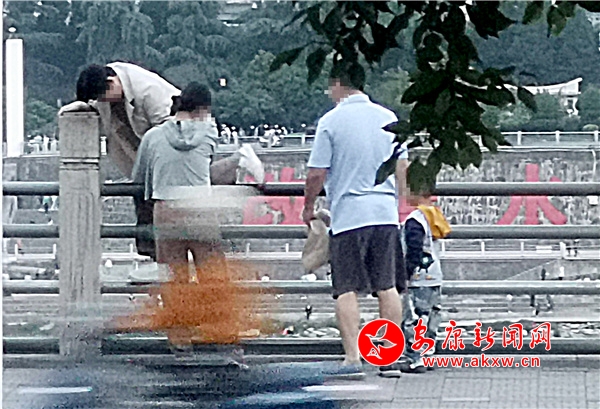 無獨(dú)有偶,在近日的江北濱江公園,游覽結(jié)束的游人為走捷徑翻越欄桿。