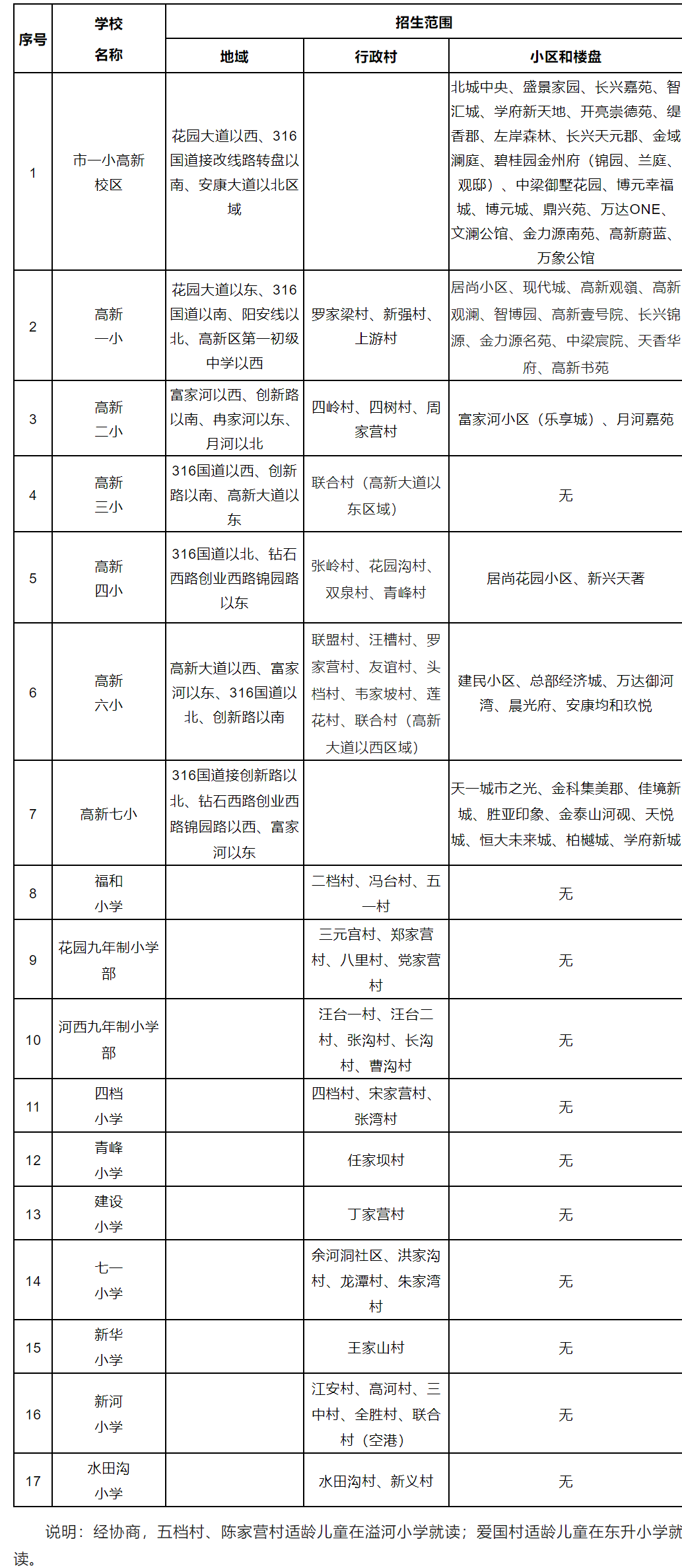 三、安康高新區(qū)2023年小學服務(wù)范圍一覽表