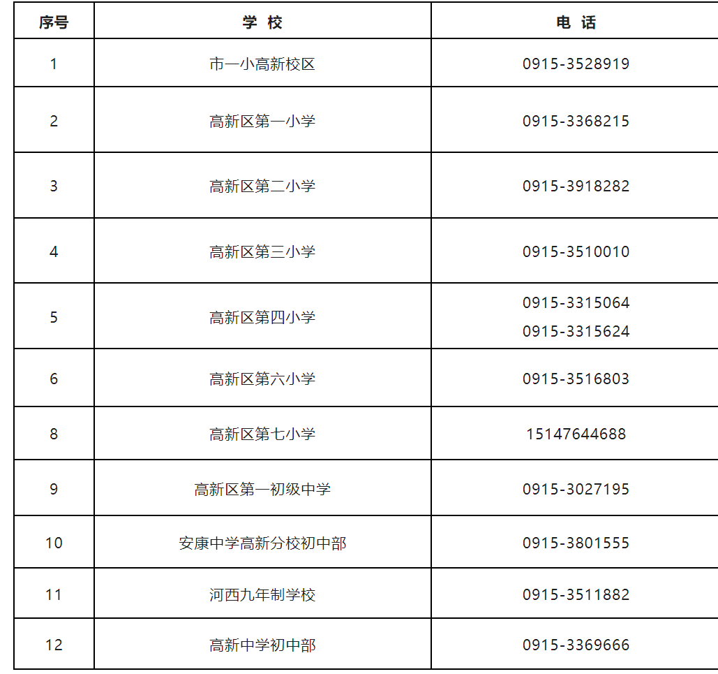 五、安康高新區(qū)2023年中小學校招生入學咨詢電話