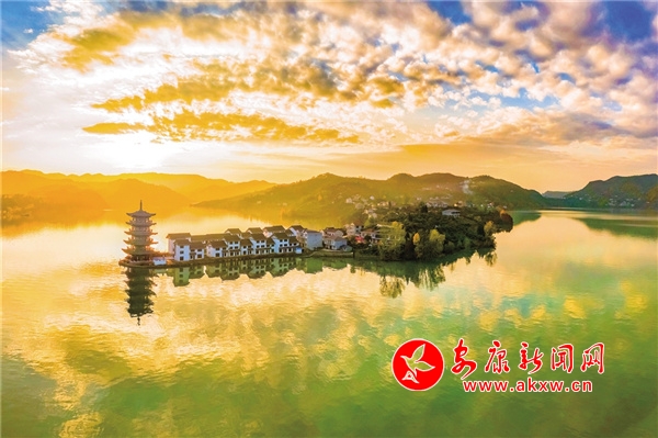 在瀛湖,冬日里的暖陽往往午后才露出羞澀的笑臉。聽說清泉老碼頭新打造了一座古香古色的小鎮(zhèn),與四周的群山和這里的大湖面渾然一體,美麗壯觀。11月下旬的一個下午,待云霧慢慢散開,我和紀平、世軍驅車來到清泉老碼頭。過去,這個碼頭是跨漢江通往玉嵐的必經(jīng)之地,也是嵐河與漢江的交匯處?;鹗瘞r電站大壩蓄水后,這里呈現(xiàn)出瀛湖最開闊的湖面,螺峰島、翠屏島、玉興島、五龍山等形成了四面環(huán)水的島嶼,清泉、玉嵐、橋興、關埡子、紅巖堡、南溪溝、任家灣等地縱橫交錯,形成了諸多形態(tài)各異的半島。水位升至最高時,“腰帶”消失,山與水渾然一體,與綿延的山勢溫柔相依。此時山頭已是草木蕭疏,只剩下光禿禿的樹枝了,而瀛湖兩岸卻秋意正濃,山坡上的紅黃綠像是被打碎了的調(diào)色盤,洋洋灑灑,帶著幾分溫潤嵌入山坡、映入湖中,在藍天白云的映襯下,宛如一個童話世界。忽然,一艘游船駛過,五彩斑斕的倒影頃刻被攪拌成彩色綢緞,任其在湖中翻滾飄蕩。夕陽劃過山頭的那一刻,紅霞漫天,湖面被染成橘色之后,一片寂靜。只有此時,山之沉穩(wěn)端莊和水之嫵媚溫柔交融一體,呈現(xiàn)出無與倫比的美。我想,這不正是我想要的那幅極具詩情畫意的場景嗎?有感: