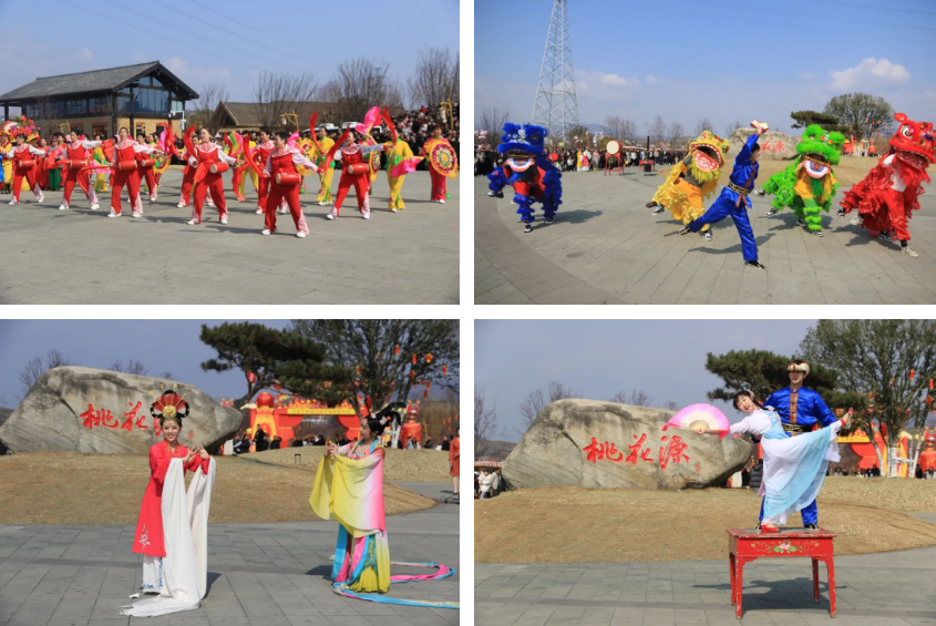 豐收大秧歌、龍騰腰鼓隊、喜慶蓮響、彩船、花轎大聯(lián)歡、社火、小場子戲等精彩的傳統(tǒng)民俗節(jié)目在桃花源相繼上演。新穎的編排、精彩的表演,令現(xiàn)場游客大飽眼福,叫好聲、喝彩聲此起彼伏。當天近25000余名市民游客前往桃花源觀看表演、打卡游園,處處洋溢著“歡歡喜喜過大年”的節(jié)日氣氛。