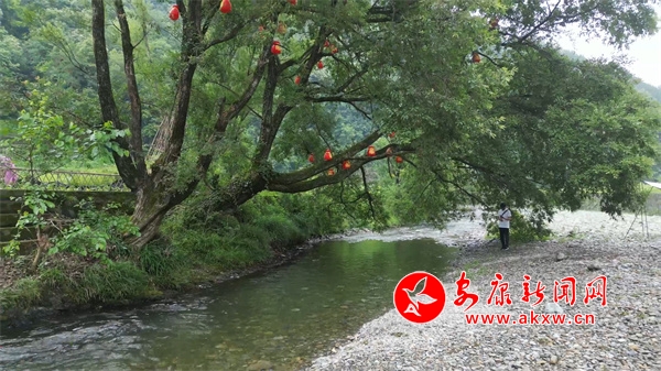 菜園緊挨著一條河。河邊,幾棵高大的麻柳樹成了幾個(gè)天然的遮陽(yáng)棚。河灘上則搭建了涼棚,供更多游客休憩。