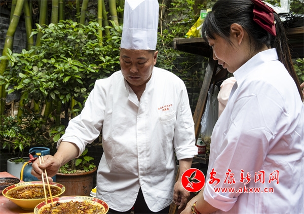 但隨著時(shí)代的發(fā)展,人們消費(fèi)理念的更新,能制作傳統(tǒng)白河“三點(diǎn)水”宴席的人越來(lái)越少,偌大一個(gè)縣,找不出幾個(gè)能夠獨(dú)當(dāng)一面制作傳統(tǒng)宴席白河“三點(diǎn)水”的廚師。所以他毅然決定辭去高薪的主廚工作,奔走于鄉(xiāng)村,上門做家政服務(wù),在實(shí)地操作技藝中傳幫帶一批會(huì)制作白河“三點(diǎn)水”宴席的鄉(xiāng)廚。
