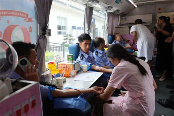 在獻(xiàn)血現(xiàn)場,民警輔警在工作人員的引導(dǎo)下有序進(jìn)行獻(xiàn)血登記表的填寫、健康征詢、血液初篩、采血等流程。一次次挽袖,一袋袋熱血,傳遞出社會的正能量與濃濃的愛心。全局民警輔警積極響應(yīng)熱情參與,以實際行動踐行無私奉獻(xiàn)的精神,營造“獻(xiàn)血救人,助人利己”的良好社會氛圍。