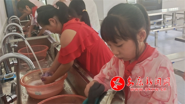 自己動(dòng)手,豐衣足食。全體學(xué)生輪流為大家就餐服務(wù),服務(wù)學(xué)生在早晨課前時(shí)間全程參與監(jiān)督廚房食材的出庫(kù)、加工、留樣過(guò)程;在午餐前15分鐘來(lái)到餐廳為同學(xué)打飯、端菜,在就餐結(jié)束后全體學(xué)生一起清洗餐具、打掃廚房;并做好每日食堂就餐服務(wù)日志。
