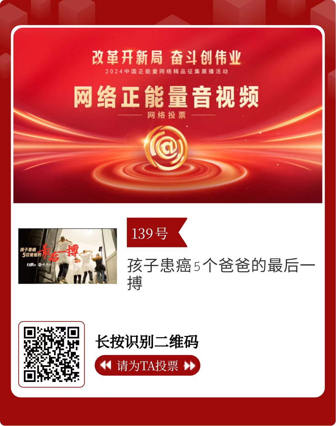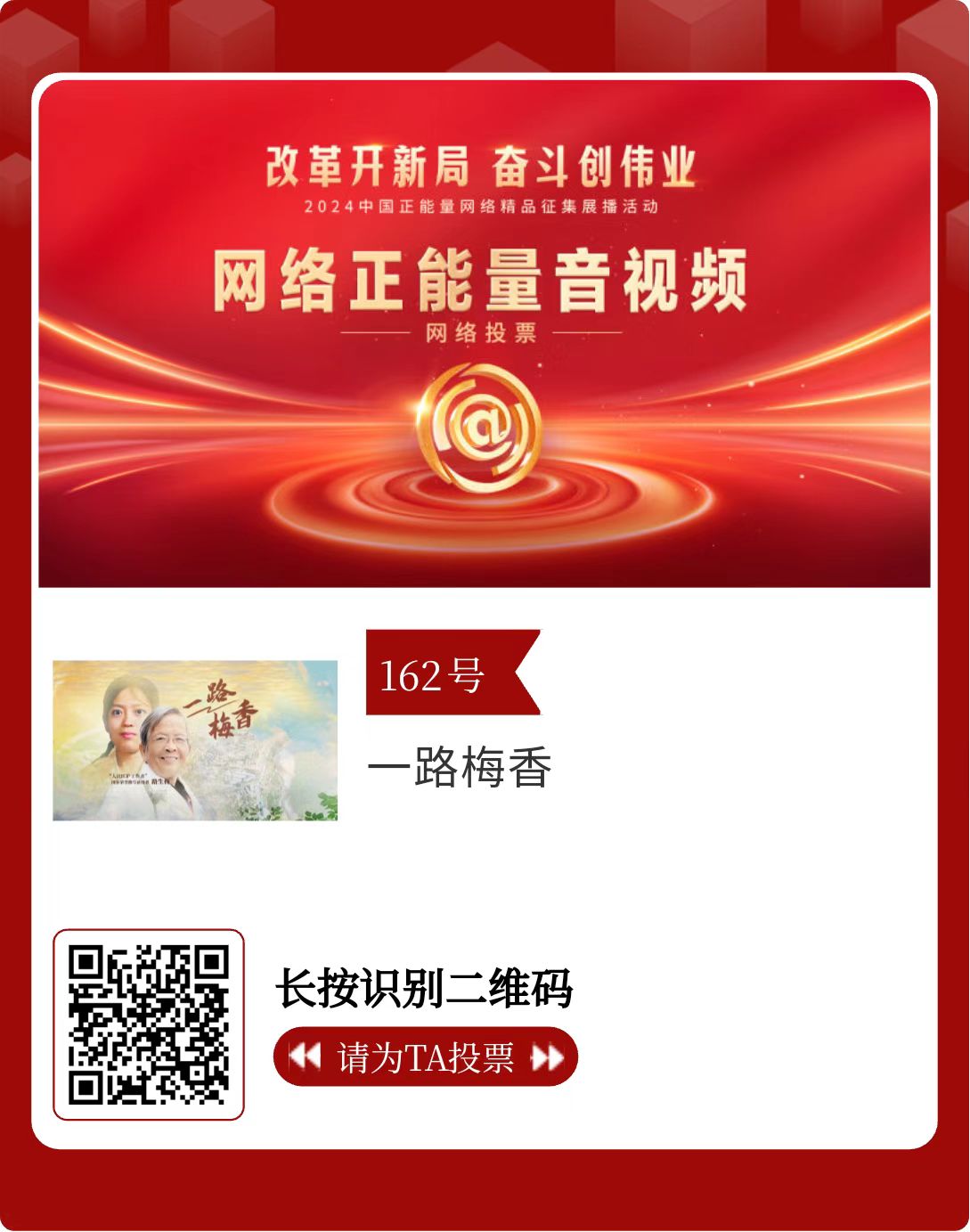 改革開新局,奮斗創(chuàng)偉業(yè)。由中央網(wǎng)信辦主辦的2024中國正能量網(wǎng)絡(luò)精品征集展播活動今天啟動網(wǎng)絡(luò)展播投票。