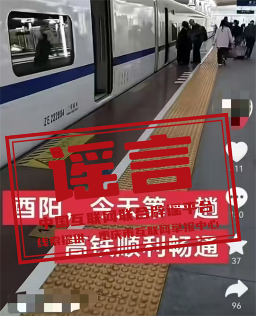 真相:近日,某網(wǎng)民在互聯(lián)網(wǎng)平臺發(fā)布信息稱“酉陽,今天第一趟高鐵順利暢通”,引發(fā)關注。經(jīng)核實,網(wǎng)傳信息系謠言,酉陽縣暫未建成高鐵站。根據(jù)建設計劃,黔吉高鐵重慶段將于年內(nèi)開工建設,線路貫穿黔江區(qū)、酉陽縣、秀山縣三地,線路全長約224.2km,全線設置車站3座,整個建設工期大概5年左右,預計在2030年之前全面建成通車。目前,警方已對造謠者展開調(diào)查。(來源:“重慶辟謠”微信公眾號)
