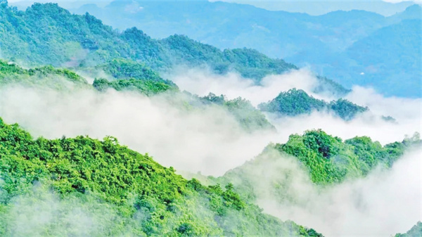 當(dāng)春風(fēng)揉碎了漢江的晨霧,紫陽縣青中村的云海便在山谷間舒展開來。這座懸于北緯32°的山間秘境,以800米海拔托起流動(dòng)的瓊宇,用茶田織就青黛的綢緞。我循著四月春風(fēng)的足跡,在云海與炊煙交織處,觸摸到山水田園詩最鮮活的注腳。