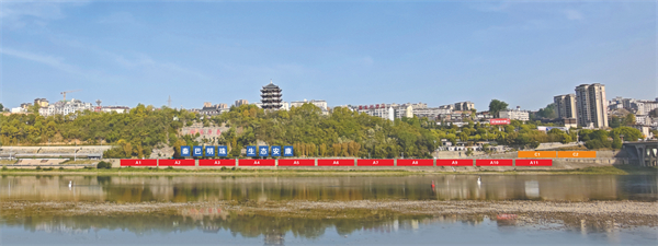 江北廣告位紅色區(qū)域:A1—A11,規(guī)格35米*7米,費(fèi)用7萬(wàn)。
