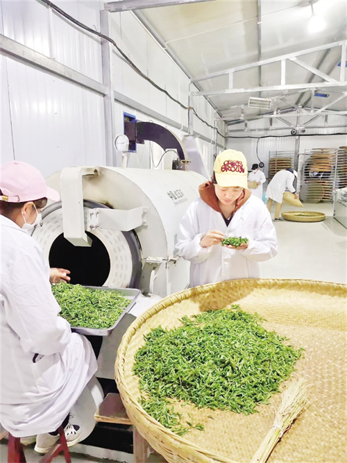 沿著九曲山路攀至絲鋪村五龍山,1200米的海拔高地,500畝生態(tài)茶園豁然舒展在眼前。茶農(nóng)們星羅棋布地穿梭在茶園,夏茶葉紛紛從茶樹間跌落?!案呱讲杌馗首悖@片云海就是天然保鮮庫?!贝逯Р繒洸碳椅妮p捻茶葉,陣陣清香沁人心脾。旬陽五龍山農(nóng)民種植專業(yè)合作社負(fù)責(zé)人王志富打開茶廠卷簾門,生產(chǎn)線熱氣蒸騰?!叭ツ晡覀兪召徚?000公斤鮮葉,加工了1000公斤干茶,產(chǎn)值達(dá)到30萬元,輻射帶動周邊村民端穩(wěn)飯碗。”