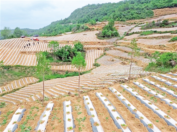 離開錢河梁,走進(jìn)海棠寺村的梯田里,種煙大戶吳義剛正迎著晨曦帶上20余名村民搶墑移栽。23年的種煙歲月在他臉上刻下溝壑,也沉淀出“致富良經(jīng)”。他瞇著眼睛笑著說:“去年新種的80畝煙田毛收入24萬,今年?duì)幦≡俣噘嶞c(diǎn),給孩子換臺好車?!碑?dāng)目光撫過嫩綠的煙苗,手掌摩擦著滴灌管道,吳義剛驀然間變得激動:“雖然今春干旱嚴(yán)重,但是政府配發(fā)的抗旱設(shè)備讓移栽成活率大大提升,我們的心血總算沒有白費(fèi)?!贝逯Р繒泟⒌瞧巾斨胰账闫甬a(chǎn)業(yè)增收賬:“今年450畝煙田已基本栽完,11個大戶帶著小戶干,戶均增收能破萬元?!?/p>