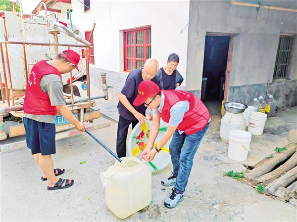 5月20日,嵐皋縣藺河鎮(zhèn)和平村的一處院落里,村民余井貴望著鎮(zhèn)人大代表李鵬與送水志愿者李增歡等人駕駛送水車而來,緊鎖的眉頭終于舒展,喃喃道:“哎呀,小李他們又來送水了!”