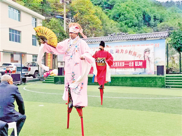 在五峰村,村支部書記羅仁春告訴記者,2023年村委會(huì)牽頭成立了五峰村文化民俗文藝協(xié)會(huì),陸續(xù)加入的48名會(huì)員涵蓋老中青三代,既有傳承高蹺絕技的老人,也有主動(dòng)學(xué)習(xí)弦子腔的年青一代。今年32歲的村民小梅加入?yún)f(xié)會(huì)后,一改往日下班后悶在家中的狀態(tài),每天下午吃完飯都會(huì)下樓和新認(rèn)識(shí)的姐妹載歌載舞,很快就成為舞蹈隊(duì)的主力?!耙郧安恢牢覀兇迳线€有文藝協(xié)會(huì),自從村上干部告訴我后,我就趕緊加入了這個(gè)小團(tuán)體,既鍛煉了身體,又愉悅了心情,生活幸福感越來越強(qiáng)烈。”身著舞蹈服的小梅身姿婀娜,水袖飛揚(yáng)間,明媚的笑容如花一樣燦爛。