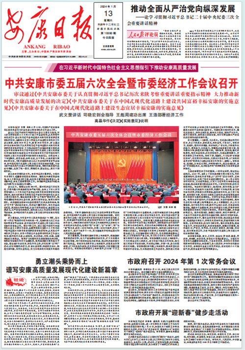 (2024年1月13日安康日?qǐng)?bào)01版報(bào)道“中共安康市委五屆六次全會(huì)暨市委經(jīng)濟(jì)工作會(huì)議召開”)