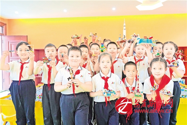 與古箏社團室相鄰的“樂拼未來”樂高室里,學生們正分組搭建自己喜歡的模型。江蘇金壇捐贈的樂高設備,為學校開展科創(chuàng)教育提供了有力支撐。過去,學校課程以理論教學為主,現(xiàn)在孩子們可以通過動手實踐,將創(chuàng)意轉化為現(xiàn)實。學校依托這些資源,成立了數(shù)學思維訓練社團。社團以提升學生綜合素養(yǎng)為核心目標,著重培養(yǎng)學生專注力與沉穩(wěn)耐心的學習品質。訓練過程中,學生不僅需要通過動手實踐與腦力思考開展科學探究,還需在零件拼接的實踐活動中,以細致嚴謹?shù)膽B(tài)度反復嘗試,逐步探索出正確的拼接方式,在實踐中深化對數(shù)學思維的理解與運用。