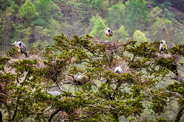 近年來,紫陽縣高橋鎮(zhèn)生態(tài)環(huán)境持續(xù)向好,吸引蒼鷺前來“安家”。 劉宗才 攝?