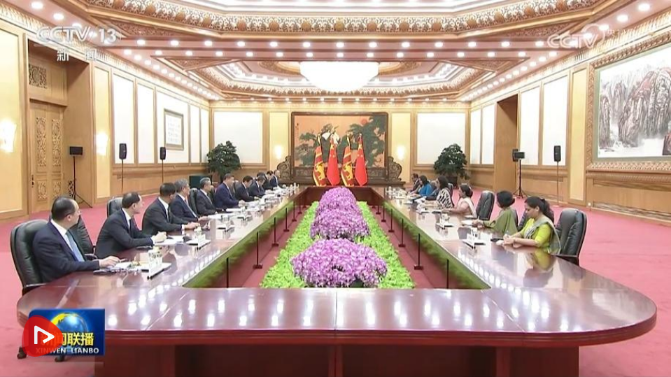 10月14日上午,國家主席習(xí)近平在北京人民大會堂會見來華出席全球婦女峰會的斯里蘭卡總理阿馬拉蘇里亞。
