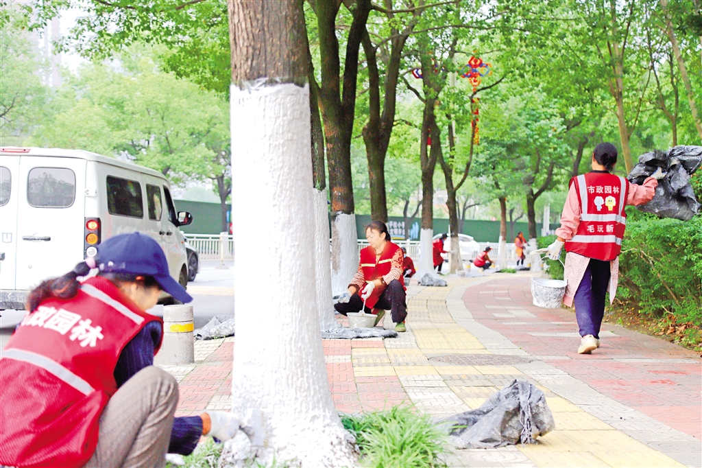 本網(wǎng)訊(通訊員 錢(qián)運(yùn)立 李敏)11月5日,安康城區(qū)濱江大道、東內(nèi)環(huán)路、黃溝路、東壩泵站等路段一派忙碌景象,綠化工人們或站或蹲,手持刷子、滾輪在樹(shù)干上往復(fù)涂刷,桶中特制涂白劑隨著動(dòng)作均勻附著在枝干上。轉(zhuǎn)瞬之間,道路兩旁的行道樹(shù)便穿上了整齊劃一的“白褲子”,成為秋日里一道兼具實(shí)用與美感的城市風(fēng)景。