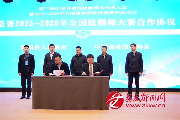 簽約與啟動儀式上,紫陽縣人民政府與中國商業(yè)技師協(xié)會簽署2025—2026年全國修腳師大賽合作協(xié)議,并共同啟動大賽。紫陽縣人社局與揚州市陸琴腳藝職業(yè)培訓學校簽訂修腳技能培訓協(xié)議;現(xiàn)場還舉行了會旗交接儀式,確定了下一屆承辦單位。
