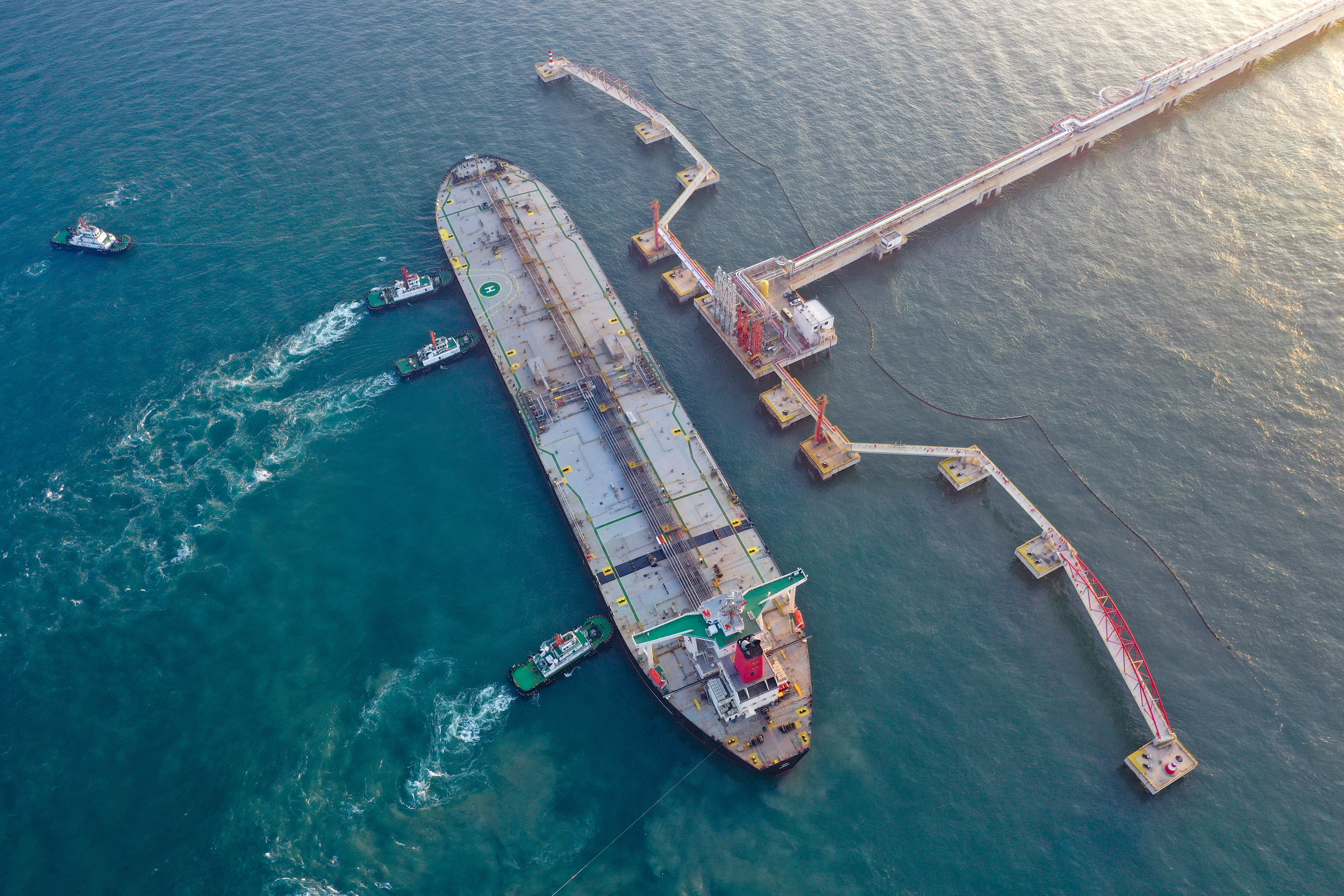 △ 2025年12月18日,一艘裝載著17.9萬噸石化原輔料的船舶泊入位于海南省儋州市的國(guó)投洋浦油儲(chǔ)碼頭30萬噸級(jí)原油泊位(無人機(jī)照片)。