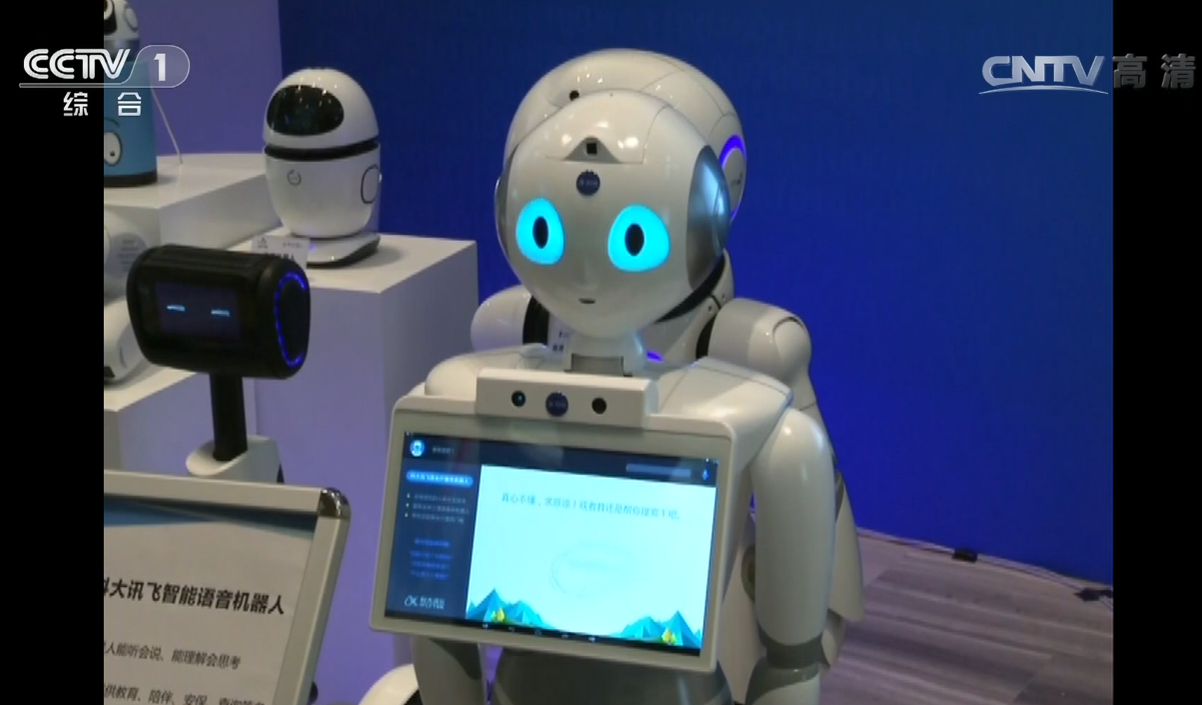 △ 2016年4月26日,習近平總書記考察中國科技大學。這是與總書記互動的機器人“小曼”。(視頻截圖)