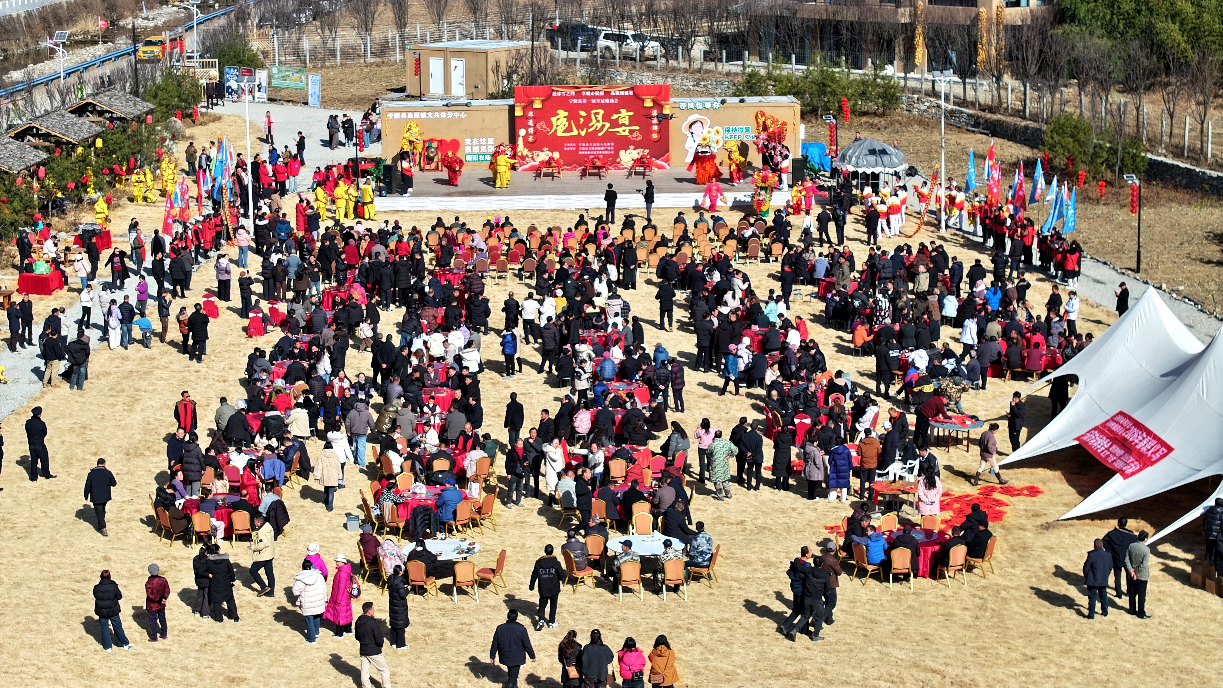 文化賦能是寧陜冬春旅游的核心亮點(diǎn)。1月16日,皇冠鎮(zhèn)朝陽(yáng)農(nóng)場(chǎng)里首屆皇冠庖湯會(huì)熱鬧開席,《二嫂夸皇冠》的表演點(diǎn)燃現(xiàn)場(chǎng)氛圍,舞獅、彩船等傳統(tǒng)民俗輪番上演,莊重的祭天儀式傳遞著農(nóng)耕文明的厚重?;顒?dòng)現(xiàn)場(chǎng)墨香陣陣,鄉(xiāng)土菜肴香氣四溢?!坝玫亩际乾F(xiàn)殺黑豬,味道特別地道?!蓖獾赜慰徒抠澆唤^口,西安游客葉格芳也直言:“專程前來,不虛此行。”此次庖湯會(huì)共吸引游客2300余人,實(shí)現(xiàn)旅游消費(fèi)30萬(wàn)元。
