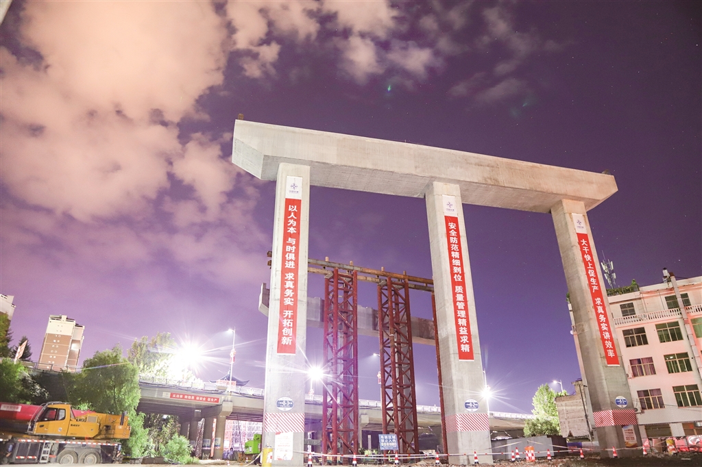2024年8月10日,主線六號(hào)、七號(hào)墩柱蓋梁完成。