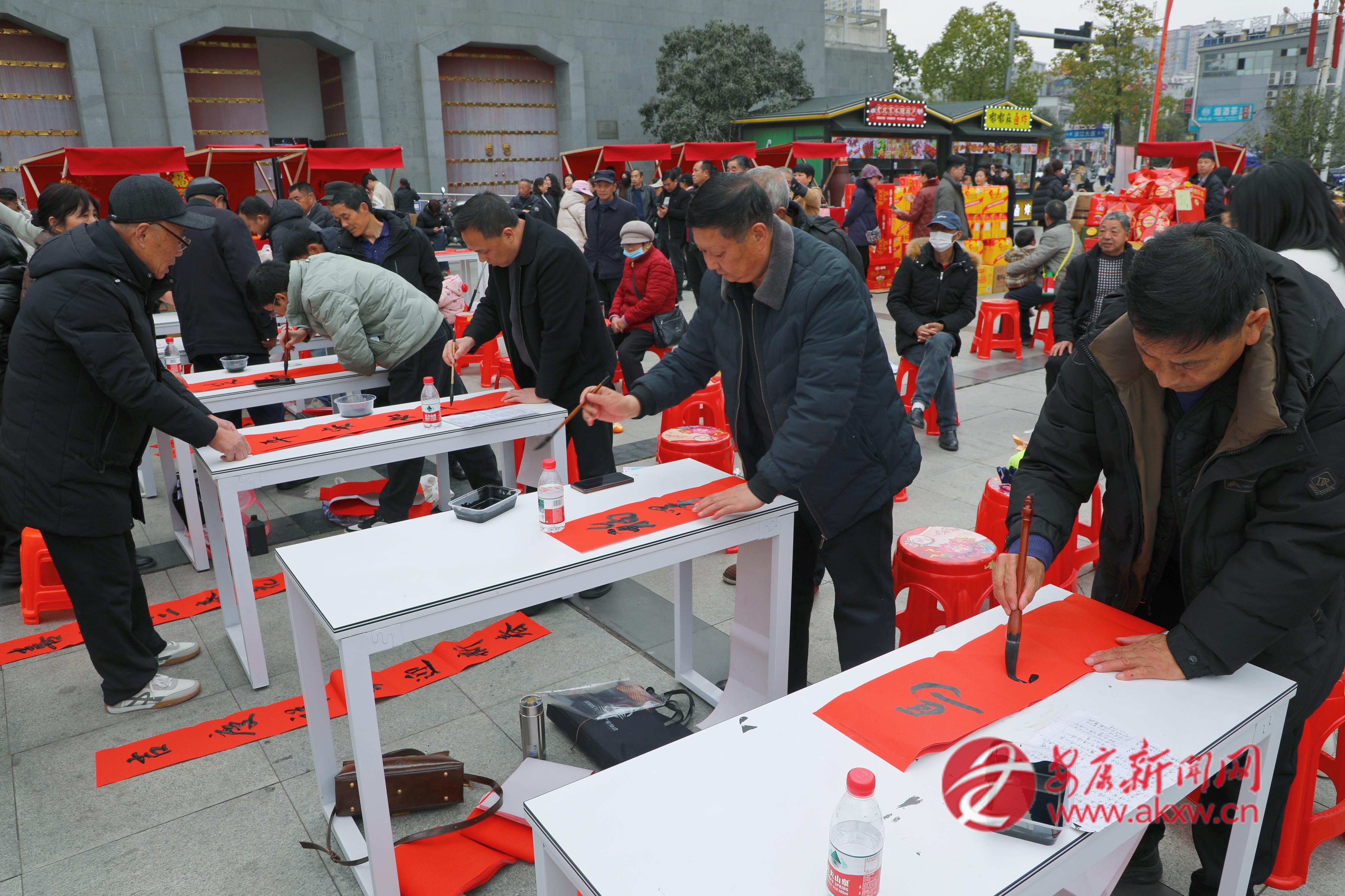活動開場,鏗鏘的舞獅表演點(diǎn)燃全場熱情,漢調(diào)二黃盡顯秦巴韻味,嘹亮的歌唱與精妙的川劇變臉輪番上演,獨(dú)具特色的文藝演出贏得市民群眾陣陣掌聲,其間的抽獎活動與趣味娛樂環(huán)節(jié),吸引市民沉浸式參與其中,更是將節(jié)日的歡樂氛圍推向高潮。另一邊,市文化產(chǎn)業(yè)協(xié)會的書法家們揮毫潑墨,一副副喜慶的大紅春聯(lián)、一張張吉祥的福字帶著墨香送到群眾手中。