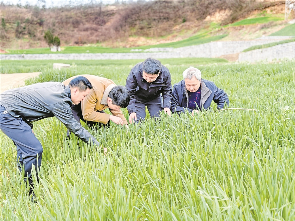 白河縣農(nóng)技推廣站人員蹲在田間,詳細(xì)監(jiān)測土壤墑情、記錄病蟲害數(shù)據(jù),手把手指導(dǎo)農(nóng)戶推廣小麥“一噴三防”、油菜“一促四防”技術(shù);平利縣農(nóng)技人員針對上年秋播連陰雨導(dǎo)致的弱苗偏多、旺苗早苔等問題,采取分片包干模式,一對一指導(dǎo)農(nóng)戶分類管理;旬陽市農(nóng)業(yè)技術(shù)推廣站副站長向鋒帶著農(nóng)技人員緊盯小麥返青拔節(jié)關(guān)鍵期,嚴(yán)格落實(shí)“帶藥偵查、打點(diǎn)保面”防控策略,逐田排查病蟲害。各地結(jié)合實(shí)際精準(zhǔn)發(fā)力,力爭早發(fā)現(xiàn)、早預(yù)警、早處置,最大限度降低病蟲危害損失。