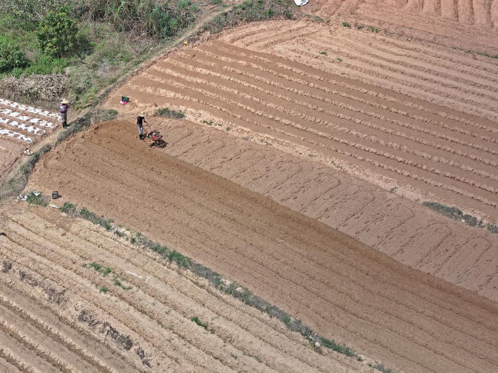 近日,廣西來(lái)賓市忻城縣城關(guān)鎮(zhèn)都樂村農(nóng)民駕駛農(nóng)機(jī)在翻耕田地,準(zhǔn)備種植玉米(無(wú)人機(jī)照片)。一年之計(jì)在于春,各地人們忙著翻耕土地、培育秧苗、檢修農(nóng)機(jī)、裝運(yùn)化肥,為春耕生產(chǎn)做準(zhǔn)備。新華社發(fā)(樊紹光 攝)