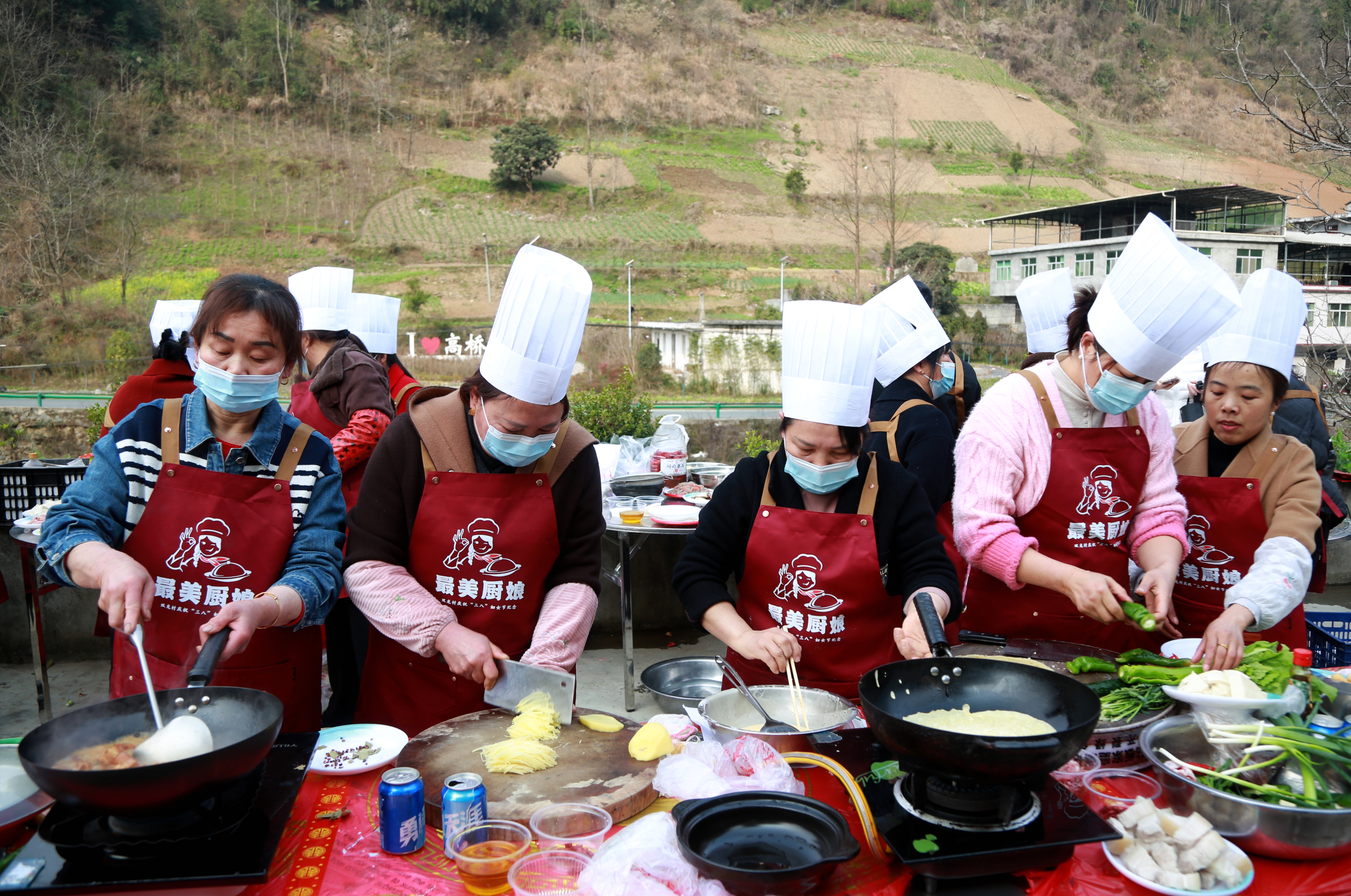 紫陽縣高橋鎮(zhèn)雙龍村舉行最美廚娘爭霸賽,歡慶“三八”國際勞動婦女節(jié)。李謝軍 攝