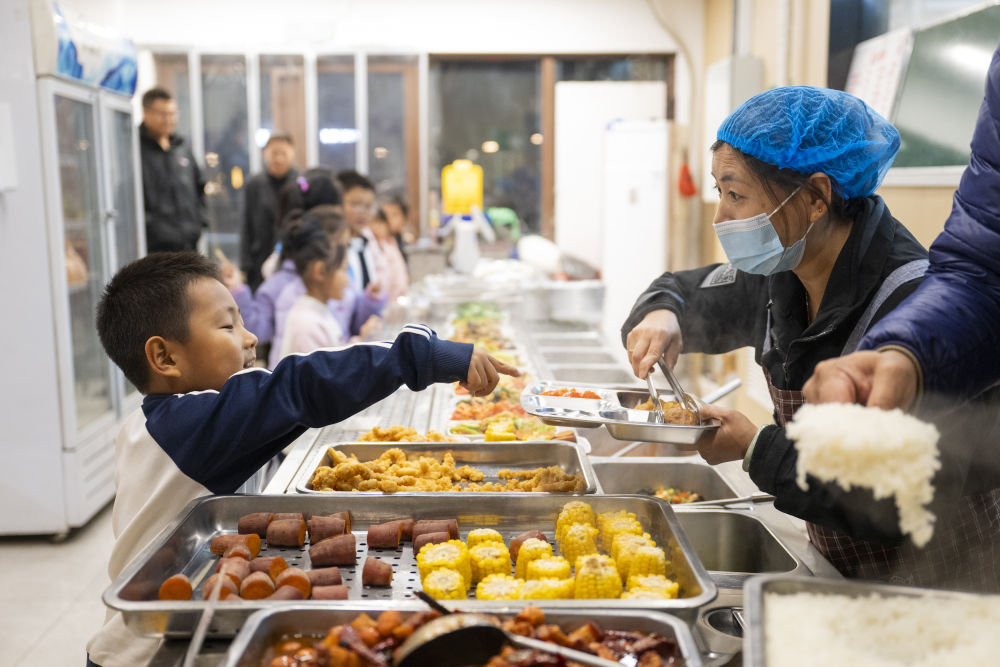 2025年11月25日,放學的小朋友在雄安新區(qū)容東片區(qū)春明北社區(qū)食堂內用餐。春明北社區(qū)食堂每天傍晚為周邊學生提供營養(yǎng)實惠的晚餐,有效減輕雙職工家庭負擔。