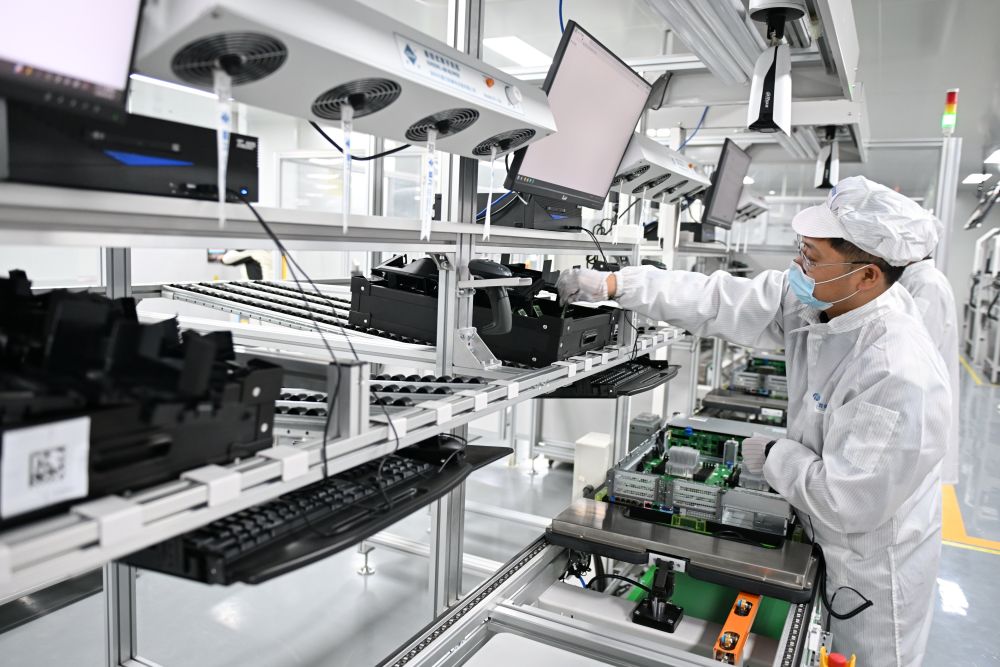 2026年3月11日,在雄安科創(chuàng)中心中試基地,雄安百信信息科技有限公司工人在服務器生產線上工作。