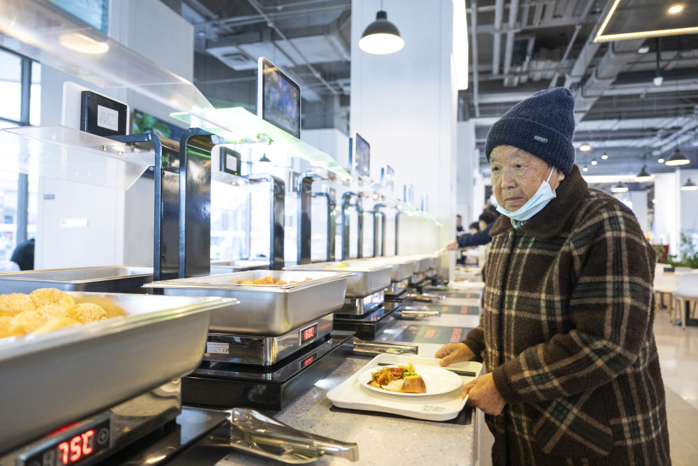2025年11月25日,老人在雄安新區(qū)啟動區(qū)文華社區(qū)華序府智慧食堂內取餐。在這座食堂,居民“刷臉”即可完成身份識別,取餐時系統(tǒng)自動綁定餐盤并實時結算,實現無感支付。此外,取餐區(qū)具備智能稱重與熱量測算功能、健康一體機可以生成健康報告并提供飲食建議。