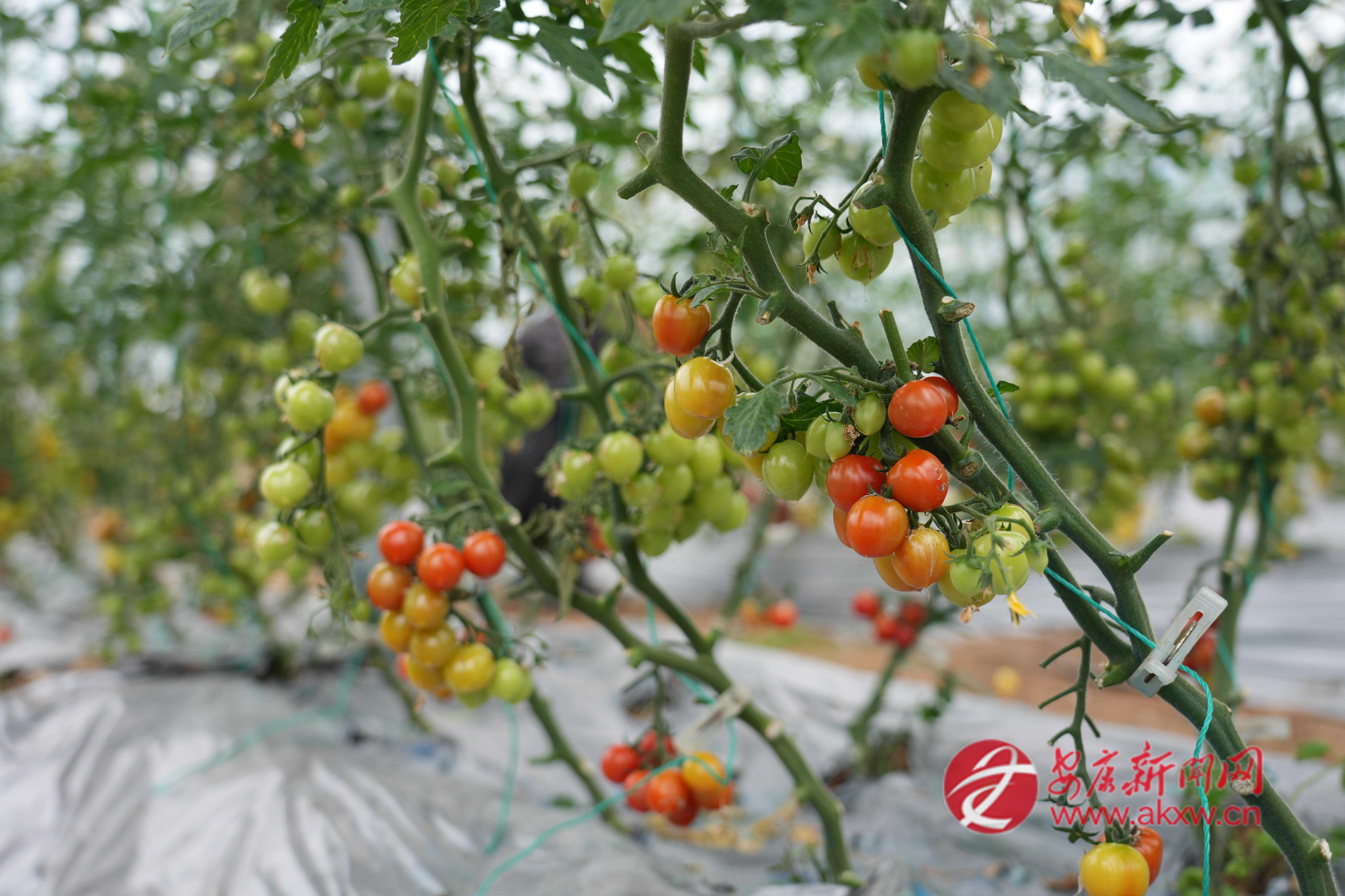 春日暖陽普照田園,產(chǎn)業(yè)園標準化種植大棚里綠意蔥蘢,清新果香彌漫其間。一排排番茄藤蔓長勢繁茂,紅、黃、綠、紫、白、焦糖等六色果實綴滿枝頭,圓潤飽滿、色澤鮮亮,宛如一顆顆彩色珍珠鑲嵌在綠葉間,格外惹人喜愛。