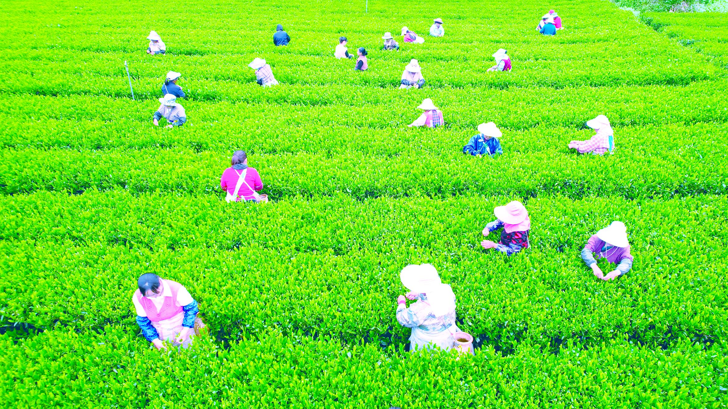 近日,在紫陽縣煥古鎮(zhèn)春堰村茶園基地,茶農正在采摘春茶鮮葉。儲茂銀 攝
