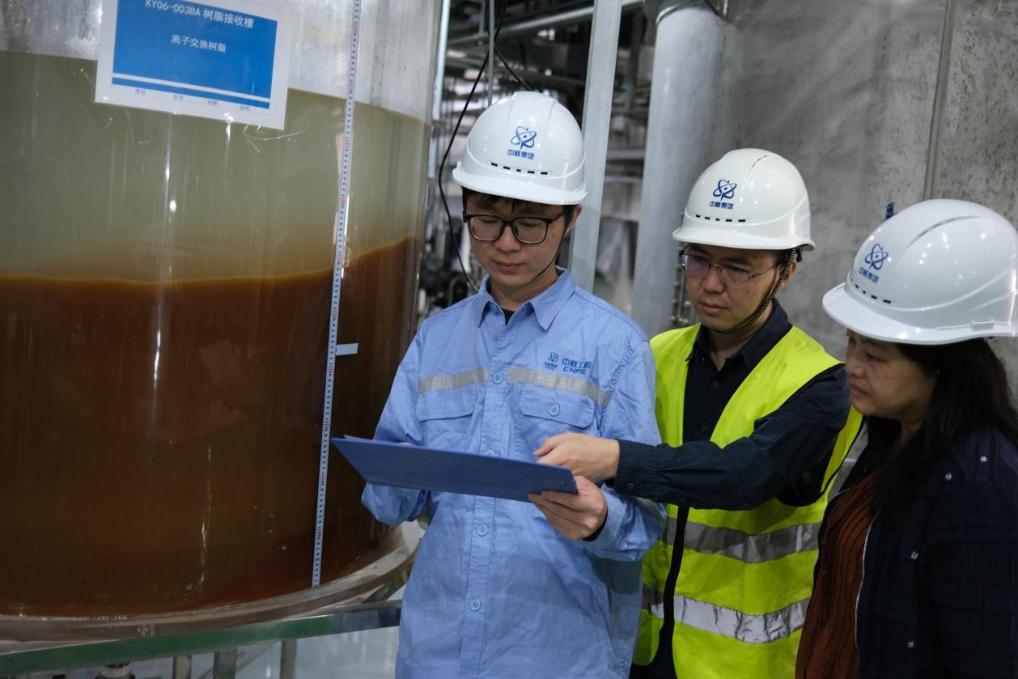2024年4月23日,中國核電工程有限公司的企業(yè)導師和項目負責人現(xiàn)場指導朱澳(左一)。(李海萁 攝)