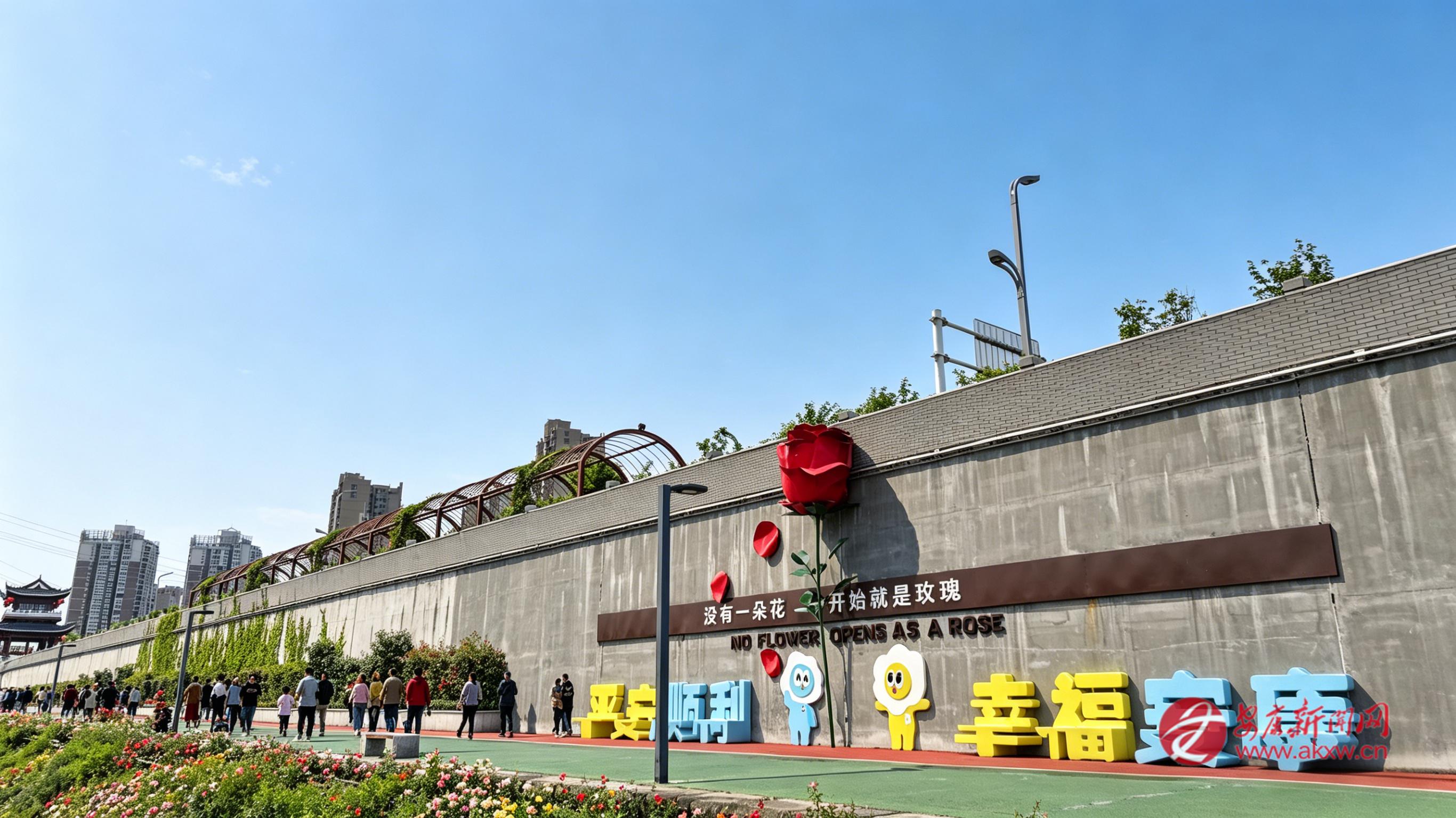 從金川門(mén)到西津漢江大橋的漢江堤岸上,月季長(zhǎng)廊如約綻放,紅似火、粉如霞,將濱江步道裝點(diǎn)得如詩(shī)如畫(huà)。市民和游客徜徉其間,與繁花合影,與江風(fēng)相擁,盡情享受春日的愜意時(shí)光。